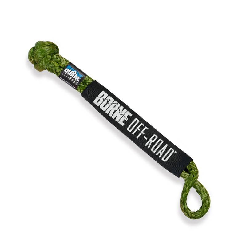 Soft Shackle, Army Green, 7/16 in The Borne Off-Road Soft Shackle serves as a lightweight, ultra-strong alternative to traditional metal D-ring shackles. Constructed from a high-strength, woven HMPE material, our soft shackles are UV and abrasion resistant, safer to use, up to 50% lighter and up to three times as strong as comparable size metal shackles. The single piece construction means that there are no pins, pieces, or latches to fail or lose on the trail. They even float on water! With a working load rating of 13,200 pounds, our soft shackles are tough enough to be used in place of traditional metal shackles for any recovery situation. Measuring 20-inches long, the flexible HMPE material allows you to easily attach to any recovery points on your vehicle. Soft and lightweight, they are easy to carry in your rig in the included storage bag. No more worrying about D-rings rattling around or damaging your bumper. Perfect to use with the Borne Off-Road Kinetic Energy Recovery Rope, 3/4" or the Borne Off-Road Kinetic Energy Recovery Rope, 7/8". Borne Off-Road Soft Shackles are the easiest, most convenient recovery attachment solution available, and as with all our products, includes our signature Lifetime Warranty. Constructed from high-strength HMPE material Low-friction, lightweight, and high strength Up to 50-percent lighter and three times as strong as equivalent size metal shackle