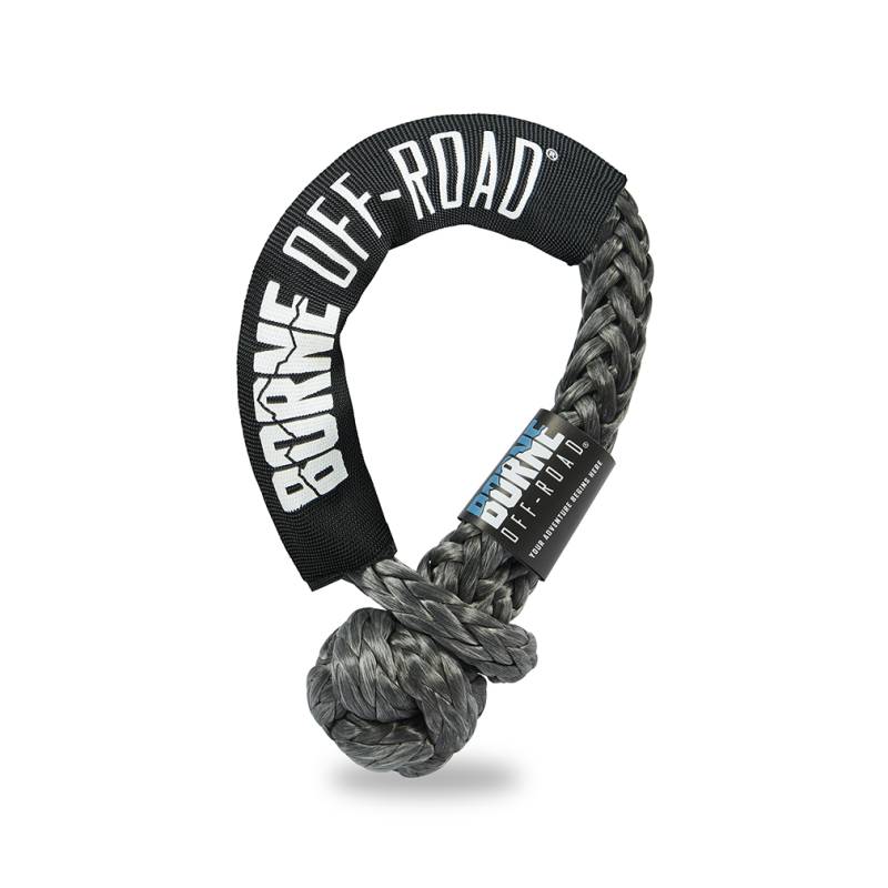Soft Shackle, Gray, 7/16 in The Borne Off-Road Soft Shackle serves as a lightweight, ultra-strong alternative to traditional metal D-ring shackles. Constructed from a high-strength, woven HMPE material, our soft shackles are UV and abrasion resistant, safer to use, up to 50% lighter and up to three times as strong as comparable size metal shackles. The single piece construction means that there are no pins, pieces, or latches to fail or lose on the trail. They even float on water! With a working load rating of 13,200 pounds, our soft shackles are tough enough to be used in place of traditional metal shackles for any recovery situation. Measuring 20-inches long, the flexible HMPE material allows you to easily attach to any recovery points on your vehicle. Soft and lightweight, they are easy to carry in your rig in the included storage bag. No more worrying about D-rings rattling around or damaging your bumper. Perfect to use with the Borne Off-Road Kinetic Energy Recovery Rope, 3/4" or the Borne Off-Road Kinetic Energy Recovery Rope, 7/8". Borne Off-Road Soft Shackles are the easiest, most convenient recovery attachment solution available, and as with all our products, includes our signature Lifetime Warranty. Constructed from high-strength HMPE material Low-friction, lightweight, and high strength Up to 50-percent lighter and three times as strong as equivalent size metal shackle