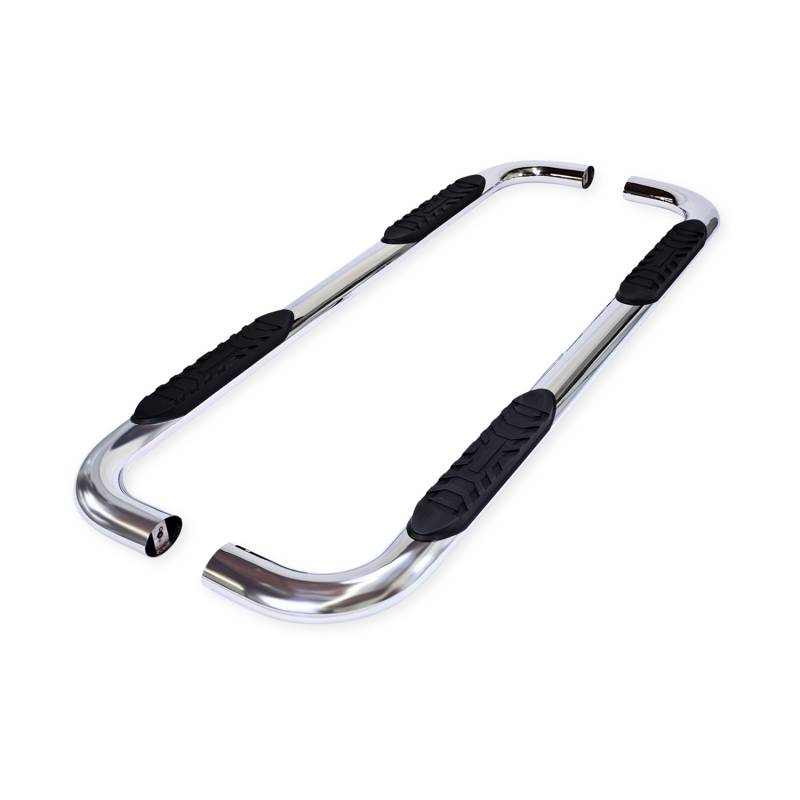 Body/ Frame Mount TrailFX Step Bars maximize style and safety when entering and exiting your vehicle. Available in various sizes, shapes, and finishes, TrailFX steps offer a solution for every need. Each pair installs seamlessly against the vehicle's contours for a sleek and stylish look. With TrailFX step products, a custom look doesn't have to break the bank. T304 Marine-Grade Stainless Steel Ensures Maximum Strength And Durability Extra-Large Molded Step Pads Provide Slip-Resistant Entry And Exit Points To The Cab Steel Mounting Brackets Are Included To Install Steps With Ease Oval Step Shape Offers A Wider Stepping Area For Secure Footing 60 Degree Bent Ends Tuck Into The Vehicle Body Which Offer A Smooth, Seamless Look