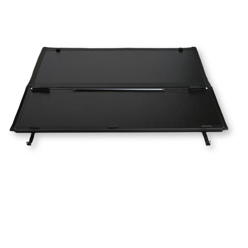 Hard Tri Fold Keep your belongings safe and secure when transporting them from one point to another. TrailFX Hard Folding Tonneau Covers can be used in four riding positions and allow easy access when you need it. Designed with quality materials and easy-to-operate mechanisms, these covers are just as stylish as they are functional. Strong fiberglass reinforced polymer top skin and aluminum bottom skin provides lasting and durable bed protection Cover is secured with a subtle, gloss black textured finish for weather resistance and a sleek look Choose between two riding positions when hauling cargo: closed or 2/3 open using woven straps with male/female snap connectors Drain tubes prevent mildew and mold buildup beneath the cover Mounts easily to bed rails using traditional brackets and slam latches, no drilling required