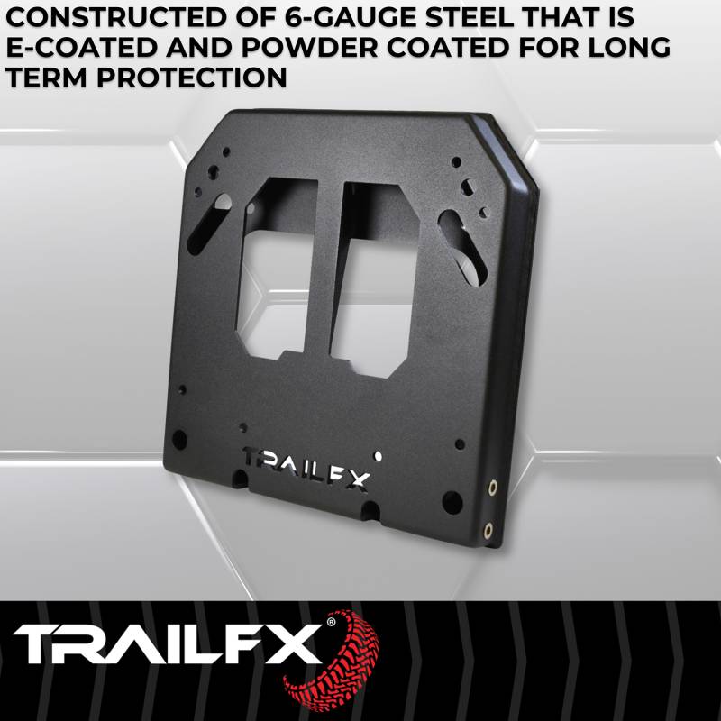 Tailgate Mounted The TrailFX Ford Bronco spare tire carrier spacer provides the additional clearance needed to accommodate larger wheel and tire sizes. Spaces Factory Spare Tire Mount To Allow For Aftermarket Wheel And Tire Combinations Up To 35 Inch Tire Constructed Of 6 Gauge Mild Steel Matte Black Powder Coat Finish Provides Durable Protection From The Elements No-Drill Installation Using Existing Factory Mounting Points Includes Mounting Bracket For Third Brake Light