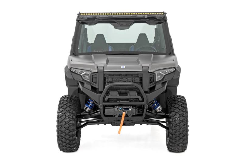 - Powerful Forward-Facing Illumination: Cut through darkness with precision using a 50" LED light bar designed for maximum visibility on your Polaris Xpedition ADV 5/Xpedition XP.\ Straightforward Installation with Minor Drilling: Upgrade your ride quickly with a mostly bolt-on setup requiring only minimal drilling for a secure fit.\ Choose Your Brightness: Available in Rough Country's Black Series delivering 19,200 lumens or the Spectrum Series packing an intense 24,300 lumens.\ Optimized Mounting Location: Positioned above the windshield for a clear, unobstructed view of the trail ahead.\ Built to Withstand the Elements: IP67 waterproof rating ensures reliable performance in rain, mud, or snow.\ Rugged, Long-Lasting Construction: Heavy-duty, die-cast aluminum housing provides exceptional durability and heat dissipation.\ Complete Installation Kit: Includes snap-on protective cover and premium wiring harness for a clean, professional setup..