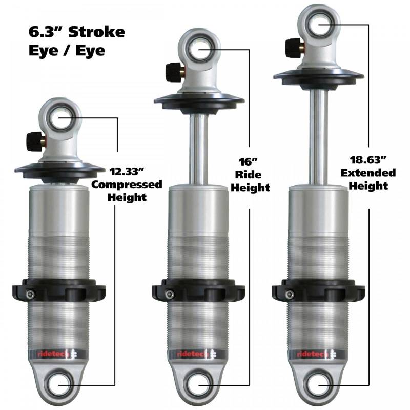 Ridetech 24169901 HQ Coilover Shock w/6.3" stroke & 1.7" eye Mount universal.