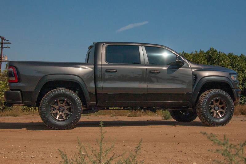 The ICON 2021-2024 Ram 1500 TRX/2025-2026 Ram 1500 RHO Lift Spacer’s modular design allows for an increased ride height of .625”-2.125" to provide fitment of larger, more agressive wheel and tire combinations and does not require disassembly of the OE coilovers for installation. The 021-2024 Ram 1500 TRX/2025-2026 Ram 1500 RHO Lift Spacer is a vehicle specific design formulated to work with existing OE components and maintains active damping system functionality. Made from CNC machined billet aluminum with an anodized black finish for the perfect sleek look and precise fit.