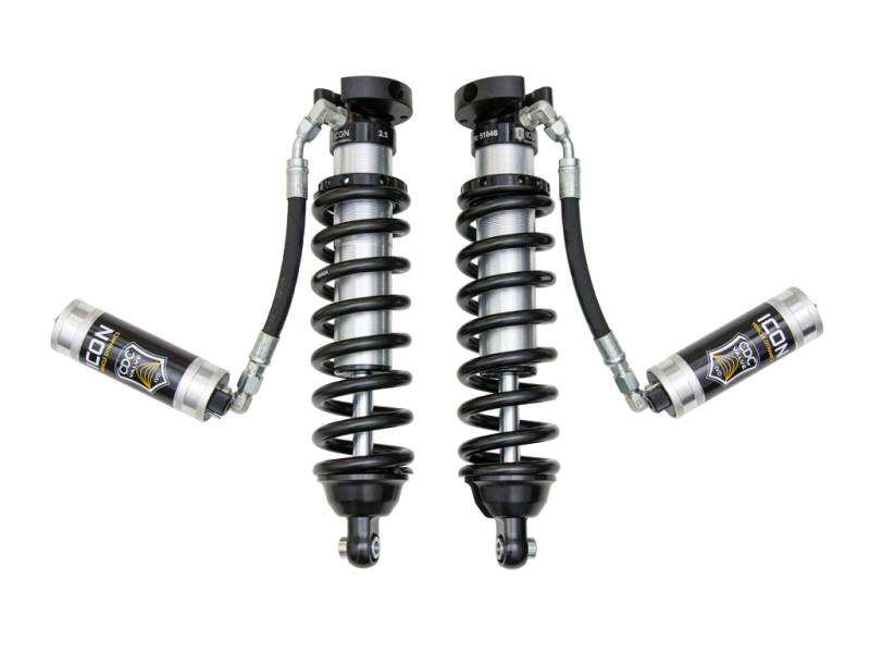 96-04 TACOMA 2.5 VS RR CDCV COILOVER KIT ICON Vehicle Dynamics V.S. Series 2.5” remote reservoir coilover shocks are an incredible upgrade for the front end of the 1996-2004 Toyota Tacoma 4WD/Prerunner. ICON’s Vehicle-specific valving provides a sport tuned feel on and off-road while offering 0-3” of lift height adjustability for use of larger, more aggressive wheel and tire combinations. The larger 2.5” shock body and increased piston area over stock components provides improved damping ability and outstanding ride characteristics across varying types of terrain. Remote reservoirs ensure optimum performance by increasing the duration of consistent damping regardless of situation, keeping the shocks at a cooler operating temperature during heavy use. ICON's exclusive Compression Damping Control Valves are included for precisely dialing in your suspension performance. CDCV controls fluid flow under compression, allowing you to achieve the perfect tune whether driving on the street, slow-crawling through the rocks or mobbing across the desert at full throttle. When paired with ICON rear 2.0 Aluminum Series rear shocks, vehicle control will be balanced front to rear resulting in the best overall driving experience for your Tacoma. Increased wheel travel over stock Vehicle specific tuned front shocks for superior shock damping and control External reservoir to attain cooler operating temperatures during extended off-road use ICON CDCV equipped for 10 settings of external compression damping adjustment Improved ride quality over stock on and off-road