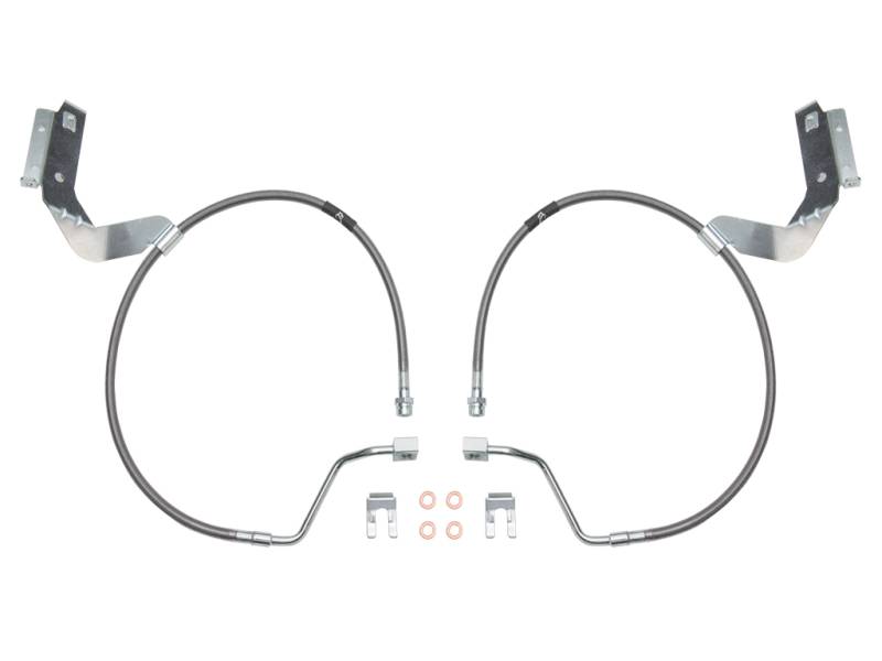 17-25 FSD FRONT 2.5" EXTENDED SS BRAKE LINE KIT The ICON Vehicle Dynamics 2.5” Lift Extended Brake Line Kit for the 2017-2025 Ford F-250/F-350 Super Duty is an excellent upgrade for the front of lifted Super Duty Trucks. These high-quality stainless steel braided brake lines feature an extended length to prevent over extending of OE brake lines on trucks with 2.5-3.5” of front lift or the requirement to bend factory hard brake lines to work with drop brackets during installation of the suspension system. Their direct bolt-in design bolts directly to the OE hard lines and brake calipers without any additional hardware required, making installation a breeze. Fits 2014-2025 Ford F-250 & F-350 Super Duty 4WD applications Extended length for 2.5-3.5” of front lift Prevents overextending of OE brake lines and requirement to bend factory hard lines High-quality stainless steel braided brake lines Direct bolt-in installation