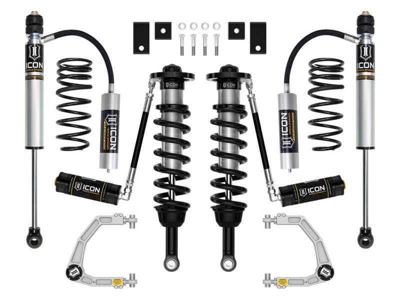 23-25 SEQUOIA 3-4.5" STAGE 6 SUSPENSION SYSTEM BILLET The ICON Vehicle Dynamics Stage 6 complete suspension system for the 2023-2025 Toyota Sequoia builds upon the Stage 5 system with the upgrade of the 2.5 Series front coilovers to remote reservoir versions. This system offers improved on- and off-road performance, with greater front and rear shock heat dissipation, as well as improved alignment specs and increased front-end lift height range for a proper stance and fitment of up to 35" tires. To compliment the remote reservoir coilover shock and billet aluminum upper control arm combo, a sway bar drop kit for the front of the truck is included along with our dual rate coil springs and proven 2.0 nitrogen charged monotube shocks with remote reservoirs for the rear. Vehicle specific design for 2023-2025 Toyota Sequoia 2.5 Series front coilovers with remote reservoirs for superior damping and vehicle control along with improved shock cooling Adjustable front ride heights from 3-4.5” of front lift over stock Billet aluminum UCAs for added strength, durability, and on-vehicle caster/camber adjustment for optimum drivability UCAs feature the patented (U.S. Pat. 10,731,700) Delta Joint Pro with 90 degrees of total articulation