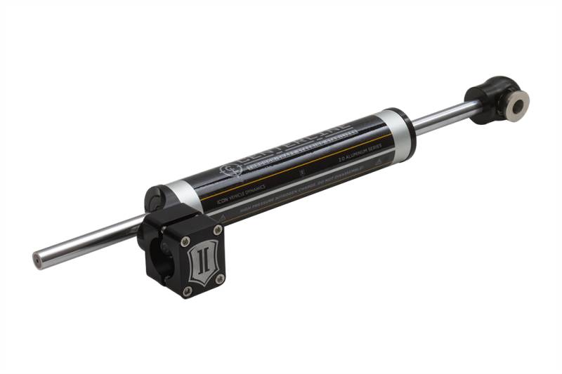 07-18 JK 2.0 CENTERLINE STABILIZER KIT Engineered to provide consistent steering damping with a through-shaft design, the ICON Centerline Steering Stabilizer eliminates the common push/pull sensation associated with traditional steering stabilizers. Developed with a wide range of aftermarket Jeep components in mind, this stabilizer features a high clearance design that allows for fitment on all ICON suspension systems. Through shaft design eliminates the push/pull sensation associated with traditional stabilizers Increased steering damping over stock unit Provides symmetrical steering feel throughout input range 100% bolt-on installation Mounts to OE tie rod (1-3/8”)