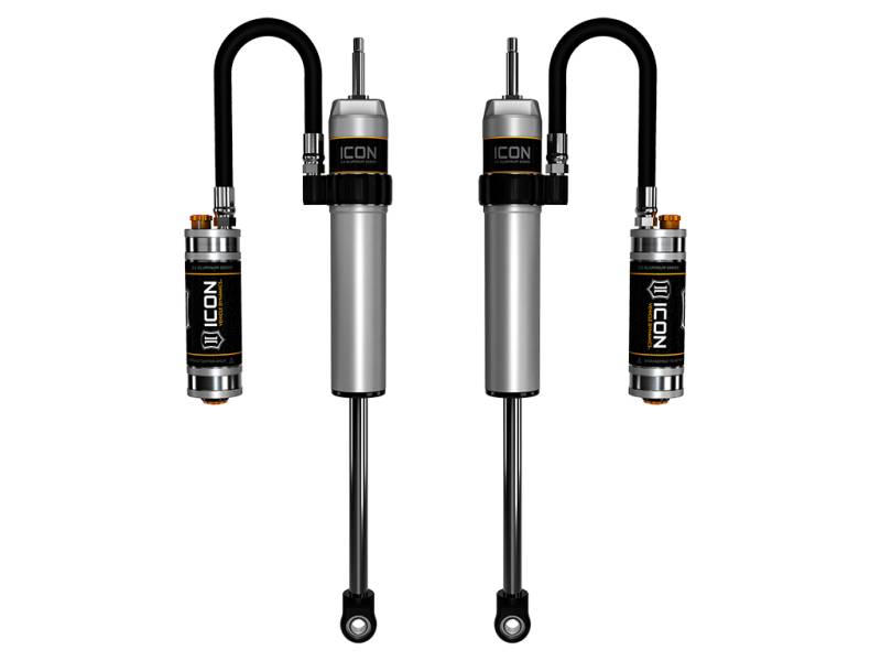 07-18 JK 3" FRONT 2.5 VS RR CDCV PAIR ICON’s 2.5 Aluminum Series shocks are designed and built to give your vehicle outstanding performance off-road and a smooth ride on the street. These shocks are configured specifically for each application in both length and damping tune. Featuring one-piece impact extruded aluminum cylinders, these 2.5 Aluminum Series shocks offer lighter weight, improved corrosion resistance, and a more uniform finish than traditional plated steel cylinders. Like all ICON'S Shock Absorbers, 2.5 Aluminum Series shocks are 100% rebuildable and 100% revalveable. For piggyback and specific remote reservoir applications, ICON'S unique use of a 6061 billet aluminum manifold a few inches below the top cap of the shock creates an internal Bump Zone that when used creates an additional 20% of damping force. This additional force helps prevent harsh bottom outs and controls the suspension when compressing at high velocity. The ICON CDC Valve is an externally adjustable valve that restricts oil flow into the reservoir which creates 10 levels of compression damping force ranges. If you are looking for a more user defined tune, consider looking into the Omega Series bypass shocks. ICON's CDC Valve technology allows for 10 levels of high-resolution compression adjustability with the turn of a knob 7/8” diameter induction hardened, chrome plated shock shaft PTFE lined spherical bearings and application specific mounting hardware 6061 aircraft grade aluminum CNC machined components One-piece impact extruded aluminum cylinders offer excellent corrosion resistance and consistent finish