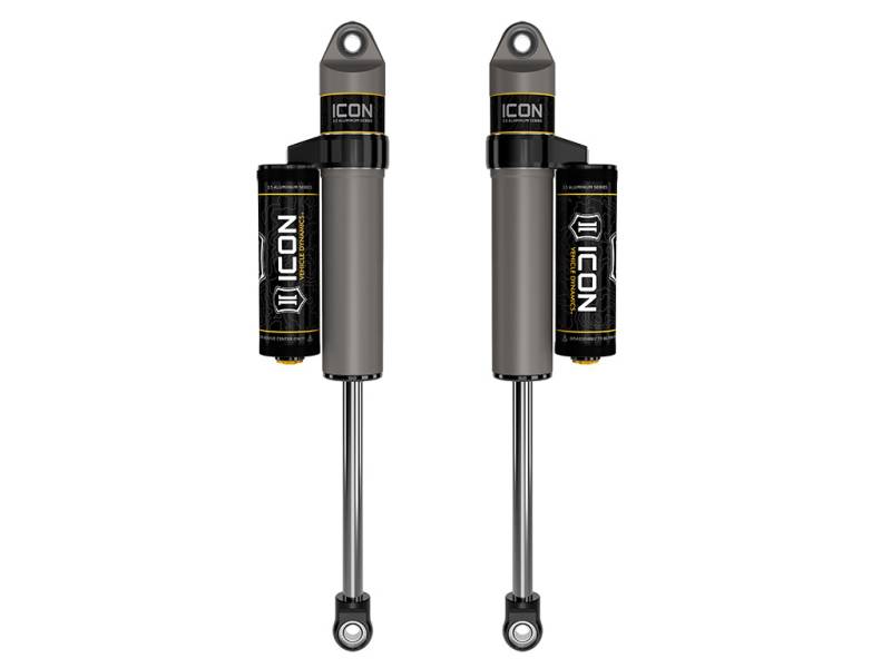 99-04 FSD 4WD 3-6" FRONT 2.5 VS PB PAIR ICON 2.5 Aluminum Series shocks are designed and built to give your vehicle outstanding performance off-road and a smooth ride on the street. These shocks are configured specifically for each application in both length and damping tune. Like all ICON'S Shock Absorbers, 2.5 Aluminum Series shocks are 100% rebuildable and 100% revalveable. For piggyback and specific remote reservoir applications, ICON'S unique use of a 6061 billet aluminum manifold a few inches below the top cap of the shock creates an internal Bump Zone that when used creates an additional 20% of damping force. This additional force helps prevent harsh bottom outs and controls the suspension when compressing at high velocity. If you are looking for a more user defined tune, consider looking into the ICON CDC Valve shocks. ICON’s internal “Bump Zone” increases damping by 20% to provide more control as the shock approaches full compression Remote reservoir design improves heat dissipation to reduce shock fade during prolonged use Premium grade 5WT shock oil for consistent suspension damping along a wide temperature range Nitrogen charged monotube design with piggyback reservoir One piece digressive piston design with vehicle specific valving for unsurpassed performance and ride quality on and off-road