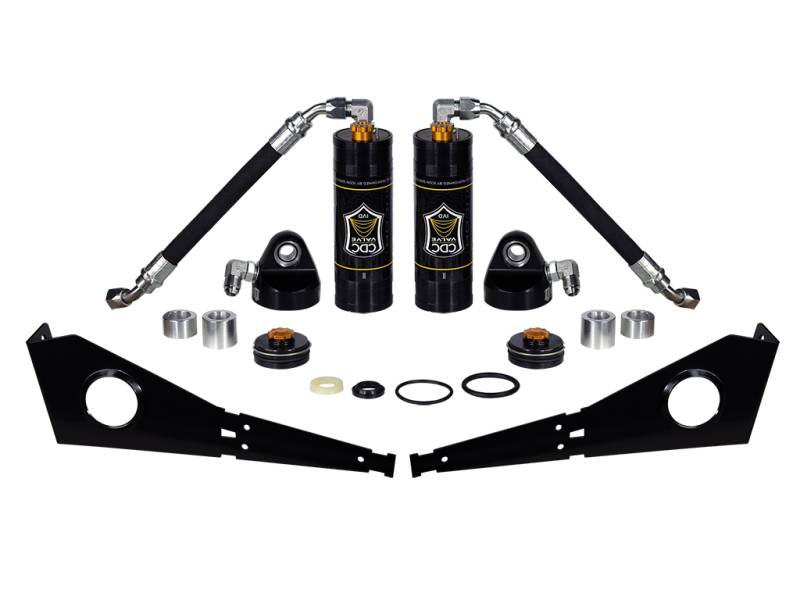 05-23 TACOMA/07-14 FJ RESI CDCV UPGRADE KIT W SEALS PAIR The ICON Vehicle Dynamics Coilover CDCV Reservoir Upgrade Kit is used to upgrade a set of ICON internal reservoir coilovers from a 2005-2023 Toyota Tacoma, 2007-2014 Toyota FJ Cruiser, or 2003-2024 Toyota 4Runner to remote reservoirs with CDC Valves during a shock rebuild. The addition of remote reservoirs will greatly increase shock oil volume and heat dissipation surface area to resist overheating and cavitation under hard use, which can lead to damper fade. ICON's exclusive Compression Damping Control Valves are included for precisely dialing in your suspension performance. CDCV controls fluid flow under compression, allowing you to achieve the perfect tune whether driving on the street, slow-crawling through the rocks or mobbing across the desert at full throttle. This kit includes all required components for the CDCV reservoir upgrade including top caps, reservoirs, reservoir brackets, hoses, CDC Valves, seal kits and extension spacers to also convert the coilovers to extended travel units if desired. Features genuine ICON Vehicle Dynamics upgrade parts Includes all necessary components for CDCV reservoir upgrade ICON CDCV offers 10 settings of external compression damping adjustment 6061 Aircraft grade aluminum CNC machined components Application specific reservoir mounting brackets