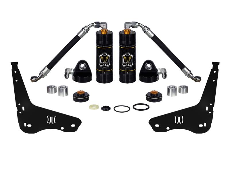 07-21 TUNDRA/08-22 SEQUOIA RESI CDCV UPGRADE KIT W/SEALS PAIR The ICON Vehicle Dynamics Coilover Reservoir Upgrade Kit is used to upgrade a set of ICON internal reservoir coilovers from a 2007-2021 Toyota Tundra or 2008-2022 Toyota Sequoia to remote reservoirs during a shock rebuild. The addition of remote reservoirs will greatly increase shock oil volume and heat dissipation surface area to resist overheating and cavitation under hard use, which can lead to damper fade. ICON's exclusive Compression Damping Control Valves are included for precisely dialing in your suspension performance. CDCV controls fluid flow under compression, allowing you to achieve the perfect tune whether driving on the street, slow-crawling through the rocks or mobbing across the desert at full throttle. This kit includes all required components for the reservoir with CDCV upgrade including top caps, reservoirs, reservoir brackets, hoses, and seal kits. Features genuine ICON Vehicle Dynamics upgrade parts Includes all necessary components for CDCV reservoir upgrade ICON CDCV offers 10 settings of external compression damping adjustment 6061 Aircraft grade aluminum CNC machined components Application specific reservoir mounting brackets