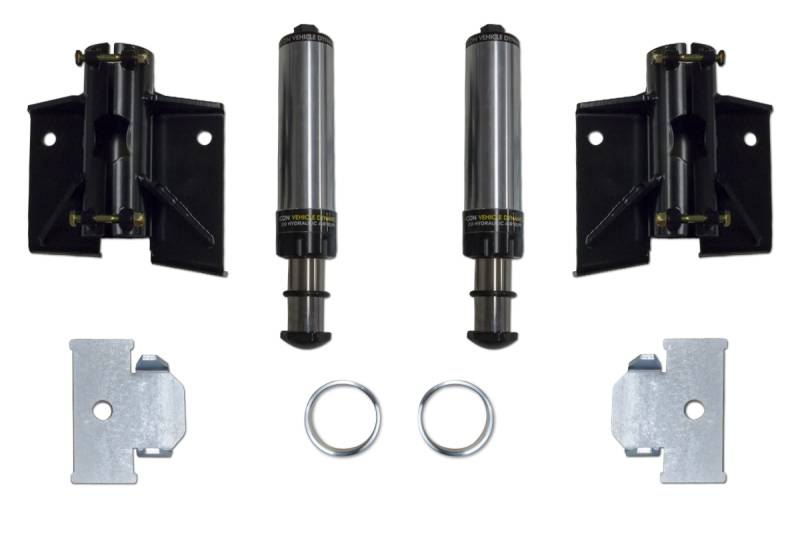 05-23 TACOMA REAR HYD BUMP STOP KIT Bolt on a set of ICON Vehicle Dynamics rear hydraulic air bumpstops to improve the on or off-road capabilities of your 2005-2023 Toyota Tacoma when using maximum suspension travel. ICON’s race proven hydraulic air bumpstops are tested, tried and true, from Cabo to Canada in all conditions. This vehicle specific tuned hydraulic air bumpstop system offers both smooth engagement, maximum bottom resistance, and smooth controlled return while being used in extreme conditions. The true value to using a compression and rebound tuned bumpstop is the exponentially increasing force is smooth, not abrupt or harsh like the OEM bumpstop. Bolt-on design using existing holes in frame for clean install with no cutting or welding Industry only Toyota Tacoma specific tune to maximize bottom out resistance while having smooth engagement as well as return Absorbs additional impact energy over the OEM rubber bumpstop and returns the axle in a more controlled manner Industry only kit allowing adjustment for leaf pack height changes so uptravel is not lost Can be returned to stock