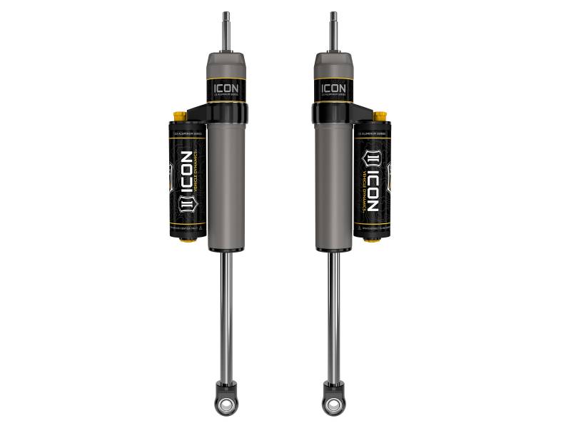 08-UP LC 200 0-2" REAR 2.5 VS PB CDCV ICON Vehicle Specific (V.S.) 2.5 Series shocks are designed and built to give your vehicle outstanding performance off-road and a smooth ride on the street. These shocks are configured specifically for each application in both length and damping tune. Like all ICON'S Shock Absorbers, V.S. 2.5 Series shocks are 100% rebuildable and 100% revalveable. For piggyback and specific remote reservoir applications, ICON'S unique use of a 6061 billet aluminum manifold a few inches below the top cap of the shock creates an internal Bump Zone that when used creates an additional 20% of damping force. This additional force helps prevent harsh bottom outs and controls the suspension when compressing at high velocity. The ICON CDC Valve is an externally adjustable valve that restricts oil flow into the reservoir which creates 10 levels of compression damping force ranges. If you are looking for a more user defined tune, con sider looking into the Omega Series bypass shocks. Nitrogen charged monotube design with piggyback reservoir Remote reservoir design improves heat dissipation to reduce shock fade during prolonged use ICON's CDC Valve technology allows for 10 levels of high-resolution compression adjustability with the turn of a knob 6061 aircraft grade aluminum CNC machined components One piece digressive piston design with vehicle specific valving for unsurpassed performance and ride quality on and off-road