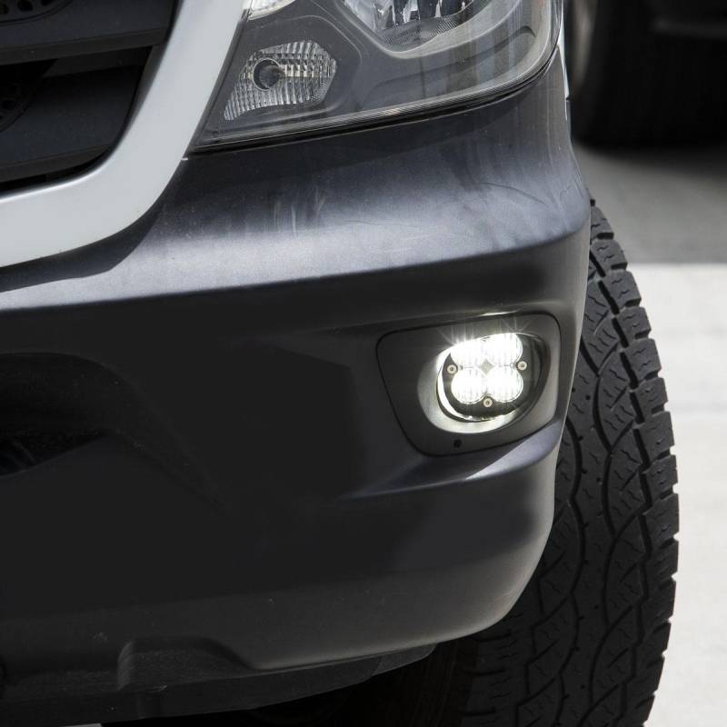 Mercedes Squadron Sport Fog Pocket Light Kit The Baja Designs Squadron Sport Fog Pocket LED off-road light kit for the 2014-2018 Mercedes Sprinter empowers enthusiasts to explore off-road, day or night. With 3,165 raw lumens per light, this kit dramatically enhances visibility in adverse conditions like dust, rain, fog, or mist—helping you spot potential hazards more easily for safer navigation.