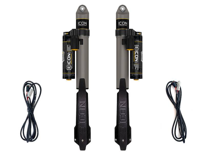 20-23 JT 1.5" REAR 2.5 VS PB CDEV PAIR ICON Vehicle Specific (V.S.) 2.5 Aluminum Series shocks with CDEV are designed and built to give your vehicle outstanding performance off-road and a smooth ride on the street. These shocks are configured specifically for each application in both length and damping tune. For piggyback and specific remote reservoir applications, ICON'S unique use of a 6061 billet aluminum manifold a few inches below the top cap of the shock creates an internal Bump Zone that when used creates an additional 20% of damping force. This additional force helps prevent harsh bottom outs and controls the suspension when compressing at high velocity. Like all ICON'S Shock Absorbers, V.S. 2.5 Aluminum Series shocks with CDEV are 100% rebuildable and 100% revalveable. ICON's CDE Valve technology allows for in vehicle adjustment of compression damping settings and active adjustment via the ICON Intelligent Control (IIC) ICON’s internal “Bump Zone” increases damping by 20% to provide more control as the shock approaches full compression One-piece, hard anodized, impact extruded aluminum cylinders offer excellent corrosion resistance and consistent finish Remote reservoir design improves heat dissipation to reduce shock fade during prolonged use Premium grade 5WT shock oil for consistent suspension damping along a wide temperature range
