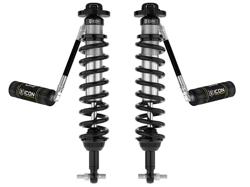 ICON Vehicle Dynamics V.S. 2.5 Series remote reservoir front coilover shocks are an incredible upgrade for the front end of the 2021-2026 Ford Bronco. These adjustable coilovers allow up to 3-4” of lift height adjustability on Broncos without the Sasquatch package or 2-3” of lift over stock Sasquatch equipped Broncos, allowing the use of larger, more aggressive wheel and tire combinations. ICON’s Vehicle-specific shock length and valving along with the larger 2.5” shock body and increased piston area over stock components yield the maximum travel possible along with superior ride quality and suspension performance both on- and off-road. Reservoirs greatly increase shock oil volume and heat dissipation surface area to resist overheating and cavitation under hard use, which can lead to damper fade. When paired with ICON 2.5 Series rear coilovers vehicle control will be balanced front to rear, resulting in the best overall driving experience for your Ford Bronco.