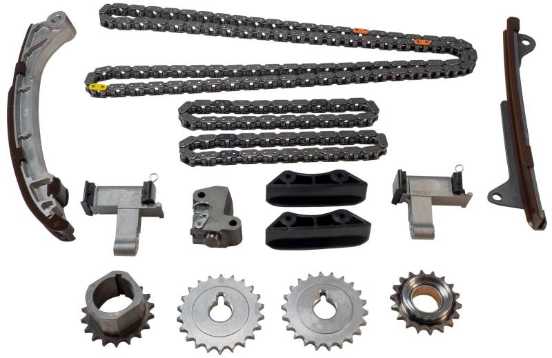 Juego de distribución convencional de repuesto Melling timing chain kits provide an efficient and economical way to provide the timing components needed for a quality engine rebuild. Timing chain options include both standard and roller chains to provide matches with the high quality sprockets and if necessary tensioner and guides that fit the application. Both OEM and performance timing chain kits are available. Melling chains and sprockets are manufactured using the highest designs, quality materials and workmanship. Melling chain kits offer you the coverage and choices of standard, HD and performance to fulfill your timing needs at every service level. Engineered for Daily Driving: Built for smooth, dependable performance in standard-duty applications, ideal for passenger vehicles and light trucks Fabricación con materiales de alta calidad para rendimiento duradero y consistente OE Fit and Function: Designed to meet or exceed original equipment specifications for a direct-fit replacement that restores factory performance Built with Quality Materials: Manufactured using high-grade components to ensure dependable performance and long service life across a wide range of engine applications.