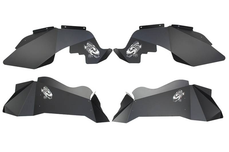 If you have Tube Fenders, you need a set of Aluminum Inner Fenders to finish the look. Once installed these offer protection from rocks and debris entering the engine compartment. These are stamped from Aluminum with the Fishbone Offroad Logo then powder coated black.