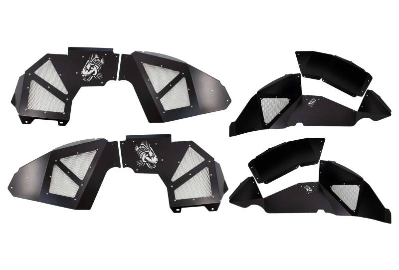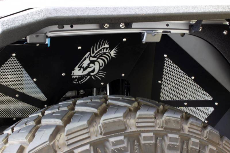 Inner Fenders Legacy Model FB33130 Enhance and protect your 2018+ JL Wrangler and 2020+ JT Gladiator with Fishbone Offroad's Black Aluminum Inner Fenders. 2018 to Current Jeep Wrangler JL 2019 to Current Jeep JLU Wrangler Unlimited Black powder coat Aluminum construction Fishbone logo laser cut on all 4 inners