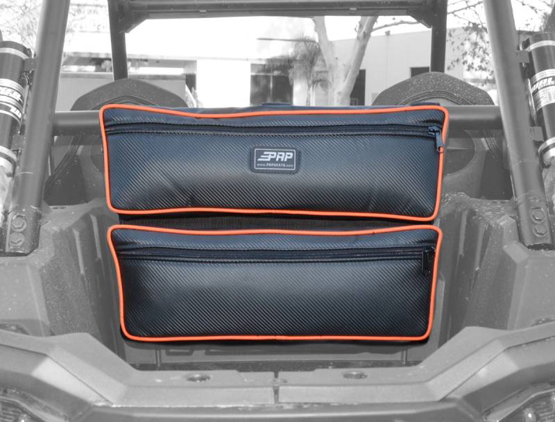 Your days of digging are over. PRP's RZR Rear Double Bag straps on to the stock harness bar and has two separate pockets for better organization. Drop your tools and spare parts in the thicker-walled bottom bag and keep your jackets, food or anything you want to keep clean in the top bag. The separate construction gives you tons of room while keeping it easy to find what you're looking for.