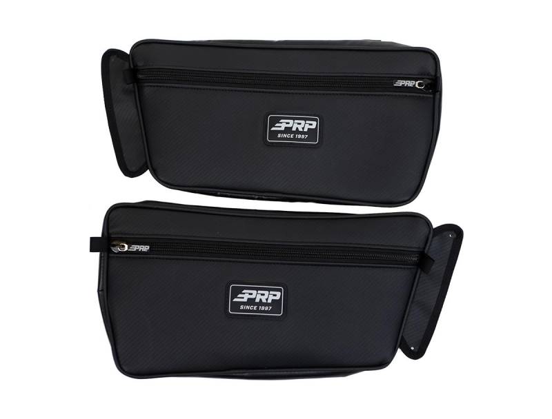 Door Bags (Pair) Add more storage to your factory doors with PRP’s Yamaha Wolverine RMAX Door Bags. These bags are great for holding onto the extra items you need while you ride. Conveniently located right next to you on the door (so you can still access them while strapped in). Made from durable, puncture resistant vinyl coated nylon and marine-grade vinyl that is water resistant. Each bag features a medium size compartment that's perfect for holding on to sunglasses, cell phones, clothing, spare rags, and extra water bottles. Sold as a pair. Fits 2020+ Yamaha Wolverine RMAX and RMAX4 with stock front doors. We have included extra push pin hardware that allows you to install the bags onto the front doors.