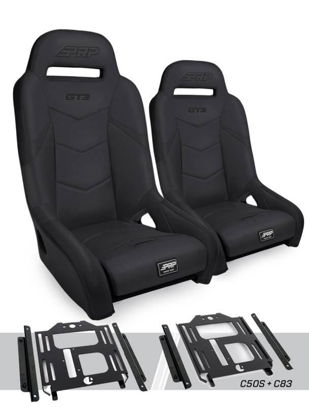 GT3 Suspension Seats Kit for Polaris RZR 570, 800, 900 (Pair) The GT3 is the third generation of our best selling GT Series. New features include a removable seat cushion, a 5th point harness slot, and all new modern styling. Additional bands allow you to customize the colors and materials of your seat more than ever! The GT3 keeps you contained and comfortable with 7? of containment, and a perfect 12° seating angle. Medium level containment on the sides keeps you secure when the ride gets rough, but still makes it easy to get in & out of the vehicle. The vinyl-coated nylon suspension liner and dual-density foam decrease the impact on the body, reducing the fatigue you feel after a long day in the dirt or dunes. PRPs 3 layer gel infused bottom cushion keeps you comfortable on long rides, and is removeable. So you can take it out when cleaning, and allows water, mud, sand, and dirt to drain out the bottom, rather than pile up in the seat. Design your own and Make it Yours! With over 60+ different colors and materials to choose from, you can customize the perfect seat for your ride. Extra options available include Front Goggle Pockets, Rear Storage Pockets, Water Paks, Heated Seats, Air Lumbar, and various Diamond Stitches. Don't forget to complete your UTV interior! Get a set of matching GT3 Rear Seats, Folding Rear Seats, or Rear Bench. Then add more storage to your UTV with PRP's UTV Storage Bags. Proudly Made in the USA. FITMENT: Front Seats - Fits into the Polaris General, General 4 (Front or Rear), XPEDITION, RZR S 900, RZR S4 900, 900 Trail, Trail, XP 1000, XP4 1000, XP Turbo, XP4 Turbo, Turbo S, Turbo S4, RS1. Polaris RZR PRO XP, Polaris RZR PRO XP4, Polaris RZR PRO R, Polaris RZR PRO R4, Polaris RZR PRO S, Polaris RZR PRO S4, Polaris RZR Turbo R, Polaris RZR Turbo R4, Polaris PRO S, Polaris PRO S4, Can-Am Maverick X3, Can-Am Maverick X3 MAX (Front or Rear), Can-Am Maverick R, Can-Am Maverick R MAX (Front or Rear), Honda Talon, Honda Talon 4, Kawasaki Teryx KRX, Kawasaki Teryx KRX4, Segway Villian, Yamaha YXZ - w