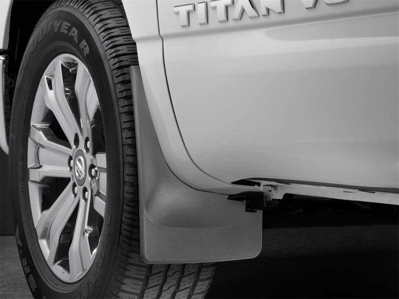 MudFlap No-Drill DigitalFit® Introducing the WeatherTech DigitalFit No-Drill MudFlap! From the creators of the revolutionary FloorLiner comes the most startling advancement in exterior protection available today.Fastening SystemFeaturing the Patent Pending QuickTurn hardened Stainless Steel fastening system. The WeatherTech No-Drill MudFlap set literally mounts-in-minutes in most applications without the need for wheel/tire removal, and most importantly - without the need for drilling into the vehicles fragile painted metal surface! Contoured specifically for each application and molded from a proprietary thermoplastic resin, the WeatherTech No-Drill MudFlap will offer undeniable vehicle protection.Unparalleled ProtectionThe WeatherTech MudFlap provides protection for your vehicles most vulnerable rust area. No-Drill MudFlaps protect the fender and rocker panel from stone chips, slush, dirt and debris. QualityWeatherTech MudFlaps are proudly designed, engineered and manufactured with American made tooling in the USA.Warranty WeatherTech MudFlaps are guaranteed against faulty materials and workmanship for a period of three years from the date of purchase. Exclusions to this warranty are wear due to severe abrasive conditions and chemical contamination, such as spilled gasoline, bleach, etc. QuickTurn Fastening System Mounts In Minutes No Drilling Needed Offers Undeniable Vehicle Protection Lifetime Warranty Against Defects
