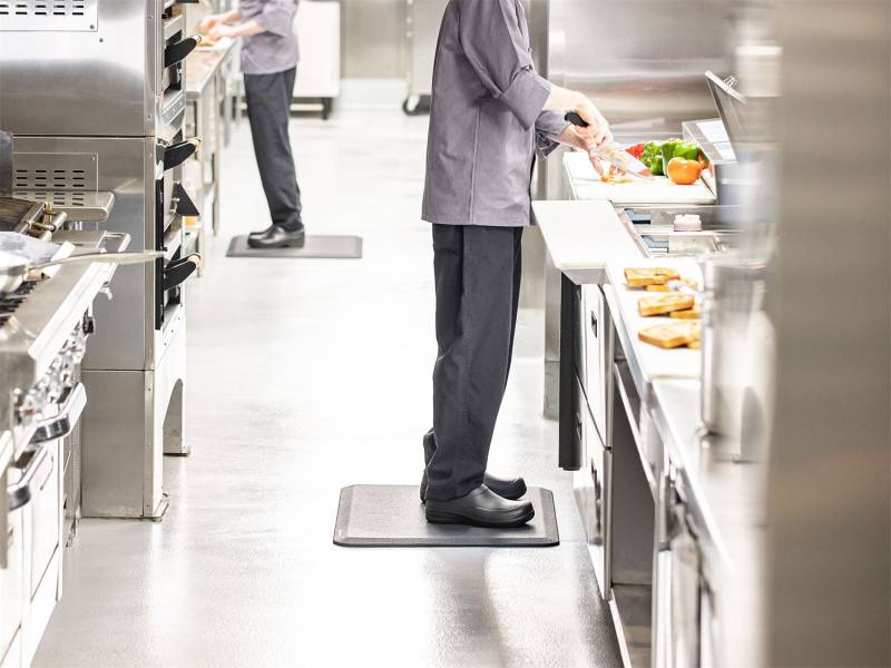 Comfort Mat WeatherTech's anti-fatigue mat offers maximum support and cushion to relieve your feet and back. Reduce the aches and pains and put a little spring in your step with ComfortMat! Reduces stress on feet knees and legs when standing Perfect for kitchens work stations and standing desks Strong cushioned material made in America