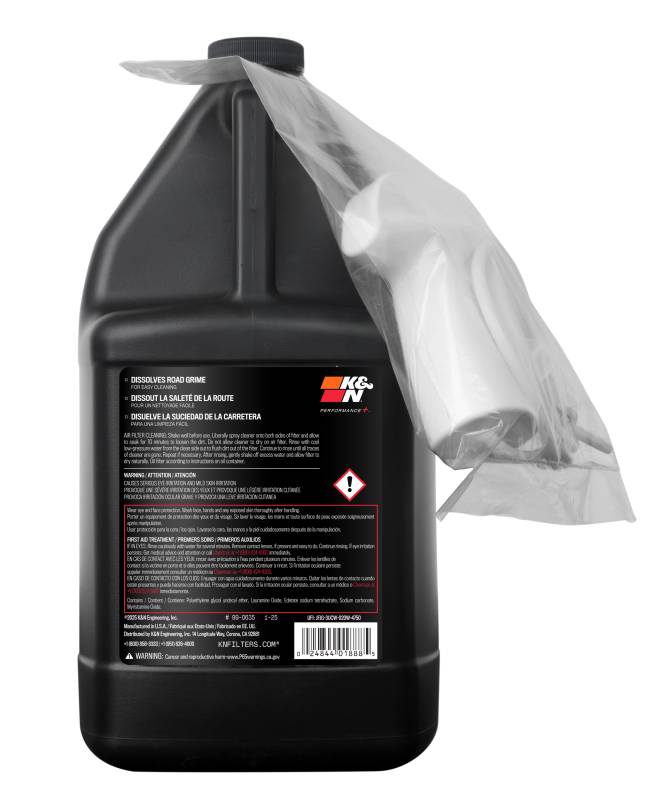 Power Kleen, Air Filter Cleaner - 1 gal K&N 99-0635 is a 1 US gallon bottle of Power Kleen air filter cleaner. K&N Air Filter Cleaner is the only cleaner recommended to clean K&N cotton air filter elements. K&N Power Kleen will bring your K&N oiled cotton air filter to like new condition. It works to dissolve the dirt build up and old filter oil, then it can be washed away with water. The use of any other cleaning solution can void the filter's warranty. It is so good at cleaning greasy dirt and grime that it can also be used as an industrial strength degreaser by removing deposits from most surfaces including cotton air filters, painted surfaces, chrome, plastic and more!
