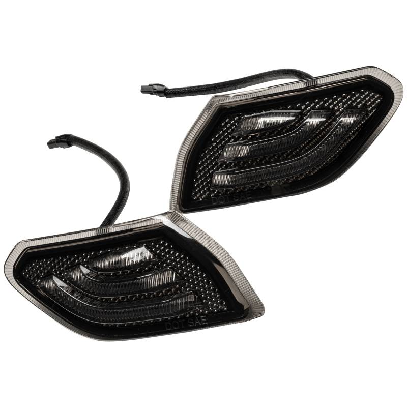 ORACLE Lighting Jeep Wrangler JL/Gladiator JT Smoked Lens LED Front Sidemarkers Enhance the look of your Jeep Wrangler JL or Gladiator JT with these dark tinted lens LED Side markers from ORACLE Lighting. Featuring bright amber LEDs these markers retain reflective properties and illuminate at night. Wiring is easy Plug and Play connection to the factory socket without causing any errors. Direct fit and matched to factory design for OE-quality fitment so these replacement LED side markers drop right into place of the factory side marker housing. These side markers are compatible with all JL and JT models, whether you have standard halogen or LED light package. Best of all, there is no modification required for installation. Enhances look with dark tinted lens with bright amber LEDs