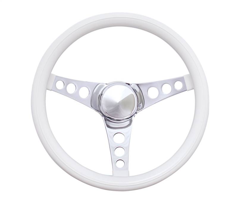 Classic Series Steering Wheel; 12 1/2 in. Diameter; 3 1/2 in. Dish; White Grip; Chrome 3-Spoke Design;