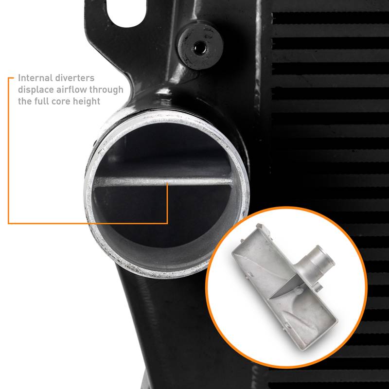 Engineered for exceptional cooling capacity and reliability, this intercooler features robust cast aluminum end tanks and a dense bar-and-plate core. With increased core volume, it'supports substantial boost pressures, making it ideal for both stock and modified trucks. The included silicone boots, featuring DuraCore technology, provide superior resistance to heat, pressure, fuel, and oil, ensuring long-lasting performance. Available in sleek silver or stealth black, this intercooler is a must-have for Cummins owners seeking to elevate their truck's performance. Backed by Mishimoto's Lifetime Warranty, you can trust in the quality and durability of this premium upgrade. Demonstrated to reduce outlet temperatures by 20°F compared to stock 63% larger core than stock 44.7% less restrictive than stock