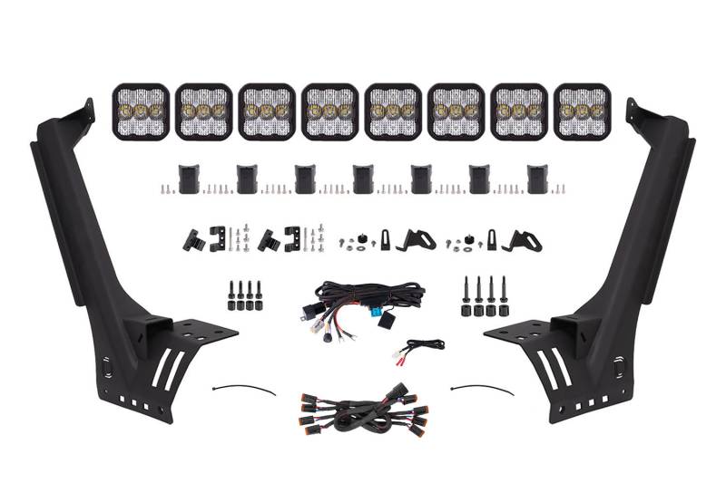 Perfect Fitment. The Windshield CrossLink Lightbar Kit compatible with Jeep JL Wrangler 2018-2021 from Diode Dynamics allows you to mount eight linked SS5 LED pods above the factory windshield. These application-specific brackets were CAD-designed to bolt into place using factory mounting points above the factory windshield. No cutting or drilling required!
