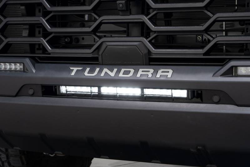 Perfect fitment. The Stealth LED Light Bar Kit compatible with Toyota Tundra 2022+ from Diode Dynamics allows you to easily mount a 18in light bar in the factory lower bumper opening. These application-specific brackets were CAD-designed to install using factory mounting points. No cutting or drilling required! This kit retains the factory lower grille for a clean, OEM-like appearance.