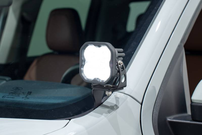 Perfect fitment. The Stage Series Backlit Ditch Light Kit compatible with the Ford Maverick 2022-2024 allows you to easily mount two SS3 or SSC2 Backlit Pods above the hood. These application-specific brackets were CAD-designed to install using factory mounting points. No cutting or drilling required! This kit features a low profile design while minimizing glare, and will not interfere with raising or lowering the hood.