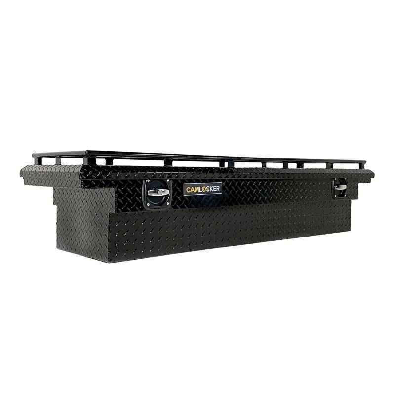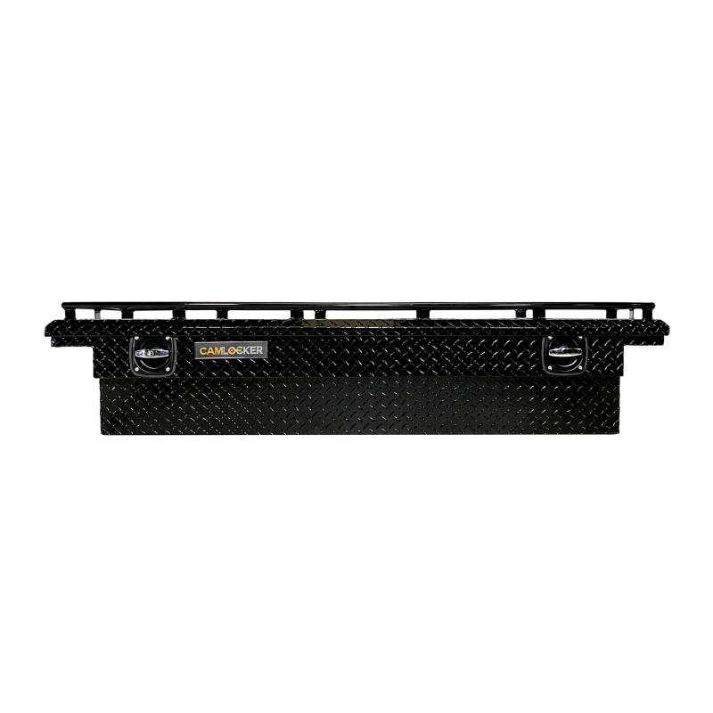 71" Truck Tool Box - Low Profile Lid - with Rail - Gloss Black For over 30 years, American Aluminum has built boxes for the Military, the FBI, and law enforcement agencies and now we've made the CamLocker available to you, so you can outfit your truck with the best American-made tool box on the market. If you're looking for the most secure way to store your gear, look no further. Unlike most tool boxes on the market that use a low-grade metal paddle locks, the CamLocker system uses revolving cams that hook through welded catches to secure the box in the closed position. Breaking in without a key would actually require the lid to be broken or the use of power tools! CamLocker tool boxes are constructed from .063 gauge polished Aluminum for strength and rigidity, so when you leave your truck you can feel confident that your tools, firearms, or gear will still be there when you get back. Inside the box, you'll find felt carpeting on all sides and on the bottom, which gives the box a high-end look and helps protect your gear. It's also mold and mildew resistant and the floor section is removable for easy cleanup. 3 Year Structural Warranty Floor carpeting is removable for easy cleaning Also available are side mount boxes, emergency vehicle boxes, UTV boxes, trailer boxes, dog boxes, and more CamLock locking mechanism keeps tools locked securely Key-lockable chrome-plated hefty carbon steel T-Handles