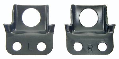 Front Outer Bumper Bracket - LH/RH Pair First time available with text stamping RH and LH as factory original. Attaches outer corner of front bumper to fender extension. Use outer bumper cushions (BU-20) Black finish. Pair. GM Part # 3945769 LH, 3945770 RH.