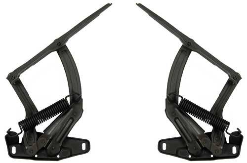 Hood Hinges - Pair Original gauge materail Accurately stamped from high strength steel. Quality construction with hardened pivot points. OE Quality. Correct dark gray phosphate plated just like GM hinges. Includes installedmatte black spring. GM Group #: 8.015 GM Part #: 3926829 LH, 3926830 RH