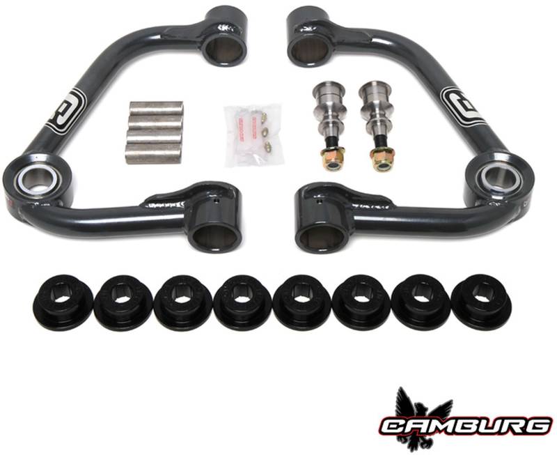Trail Series Performance Lift Kit w/ FOX 2.00" The Camburg FOX 2.0 Trail Series kit is a suspension system designed for the Ford F-150. It includes FOX 2.0 Performance Series IFP Coilovers that provide 0-2 inches of lift and increased wheel travel. These shocks feature a durable alloy body, billet aluminum components, and a heat-treated alloy steel shaft. The kit also includes uniball upper arms that replace the stock ball-joint, improving wheel travel and durability. The arms have increased caster and a modified camber curve for better alignment and handling. A billet aluminum cover protects the uniball from dirt and contaminants. In the rear, the kit includes FOX 2.0 Performance Series shocks with a larger shock body for improved off-road performance. Note that factory 20" wheels may require a spacer and aftermarket wheels with the correct offset are recommended for optimal fit and performance. This kit is not compatible with vehicles equipped with certain features such as Continuously Controlled Damping (CCD) adaptive suspension, BlueCruise or PowerBoost Hybrid engines, or Tremor models. The kit provides a 0-2" lift, improved ride and handling, and is made in the USA. Corrected suspension geometry Improved ride and handling Increased wheel travel