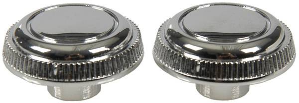 Radio Knobs (2pcs) - Chrome (Volume & Tuner) Quality hard chrome diecast reproductions of factory original radio control knobs for original AM and AM/FM radios. Pair.