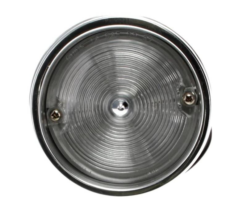 Park Lamp Assembly - RH Complete assembly. Includes an accurate concours quality reproduction lamp housing with stamped original text, riveted ground wire with correct terminal end, installed bulb socket, bulb, quality lens with chrome inner bullet and script, molded lens gasket and chrome lens screws. RH (passenger) side only. Officially Licensed GM Restoration Parts.