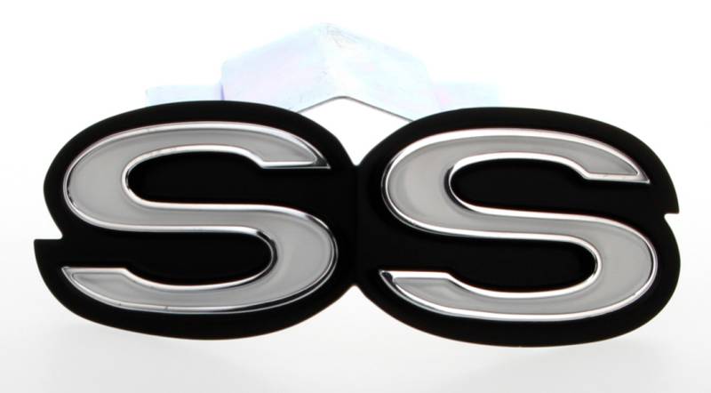 Grille Emblem - "SS" Chrome diecast with black and white enamel inlays. Includes backing plate and hardware. Officially Licensed GM Restoration Parts. GM Group#: 1.303 GM Part #: 3958638, 3981921.