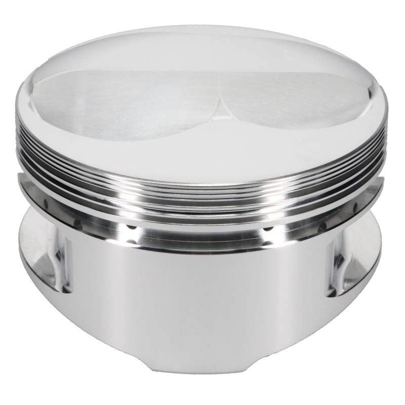 Piston Set, 2618, Dome, 4.165 Bore, 1.062 CD, 0.927 Pin, Set of 8. As the leader in forged racing pistons, JE Pistons has applied over 75 years of experience to its wide range of premium forged pistons for domestic applications. Engineered, forged and machined 100% in the USA, JE Pistons are designed for each specific engine and racing application to provide the ultimate combination of durability and performance. From dirt track to drag strip, JE Pistons? performance is proven in victory lane time and time again. Equip your engine with the best in forged pistons. Forged in the USA using 2618 aluminum, yielding high tensile strength needed for high-demand performance applications Designed specifically for each engine and use application to provide optimized performance durability Proprietary Forged Side Relief (FSR) forging design minimizes friction and power loss with reduced skirt width and saves additional weight with a shorter wrist pin Skirt coating (depending on application) reduces friction and wear on piston skirts and cylinder walls while simultaneously reducing operating noise Accumulator groove (depending on application) helps reduce pressure from combustion gases, reducing ring fluttering and improving ring seal for consistent power