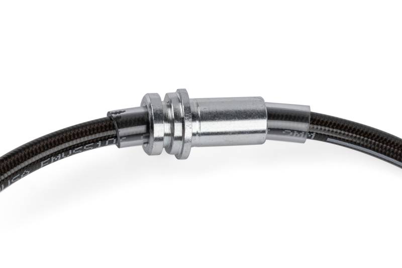 APR Braided Stainless Steel Direct-Fit Brake Line Upgrades are a direct replacement that improves your braking experience with the best lines on the market today. We do away with the factory rubber hoses that expand and can even rupture over time, and replace them with braided 304 stainless steel lines with a smooth-bore Polytetrafluoroethylene (PTFE) / Teflon core that allow for very little expansion. This gives you a firmer brake pedal with less required pedal travel as the fluid gets to its destination faster without all the flex and expansion that happens with lower quality lines. Unlike many universal lines on the market that often use connector adapters, ours are application specific with the correct length and hose fittings, eliminating potential leak points. The lines have an attractive polyvinyl chloride (PVC) outer jacket in smoked clear so you can see the braided lines from within, with red anodized inserts, and Cr3+ steel connectors. Each brake line is fully tested to 3,000 psi prior to sale, which is far beyond typical operating pressures. The lines are independently certified as SAE "low-expansion" lines and average only 0.07 cc/ft @ 1,000 psi and 0.11 cc/ft at 2,900 psi! They are compatible with DOT 3, 4, 5 (silicone-based), and 5.1 brake fluids, are fully DOT-compliant, and meet FMVSS106 and SAE J1401 standards. These are the only brake lines you'll ever need!