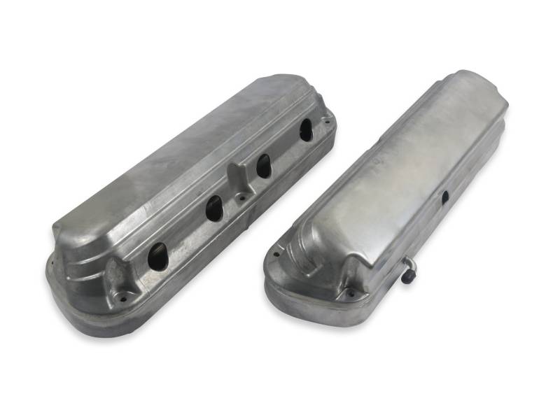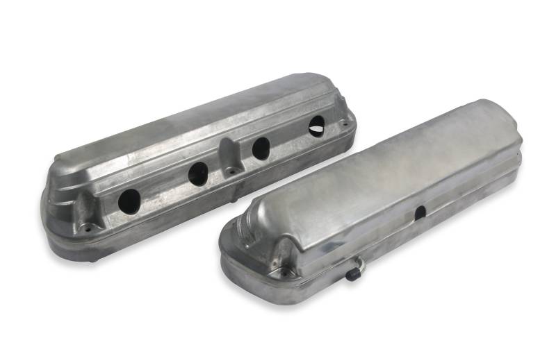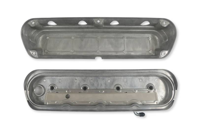 Holley's 2-Piece LS valve covers are a great way to update the look of your LS engine without the use of complicated adapter systems or the hassle of remote coil relocation. These modular LS valve covers feature an OE height, internally baffled LS valve cover base with integrated coil mounts for popular Gen I and Gen V style LS coil bodies, and a Ford style overcover that hides the unsightly LS coils and messy wiring harness - allowing the full performance benefits of coil-on-cover ignition setups without the robotic styling. The coil cover also features cast-in provisions for the spark plug boots and coil wiring harness so no extensions or custom wiring is required.\nEach 2-Piece LS valve cover set includes a low-profile billet oil fill cap, hardware and spacers for mounting both versions of LS coil bodies, and dress up hardware and rubber grommets for the coil covers. These modular LS valve covers are available in 3 custom finishes: natural cast, polished, and satin black