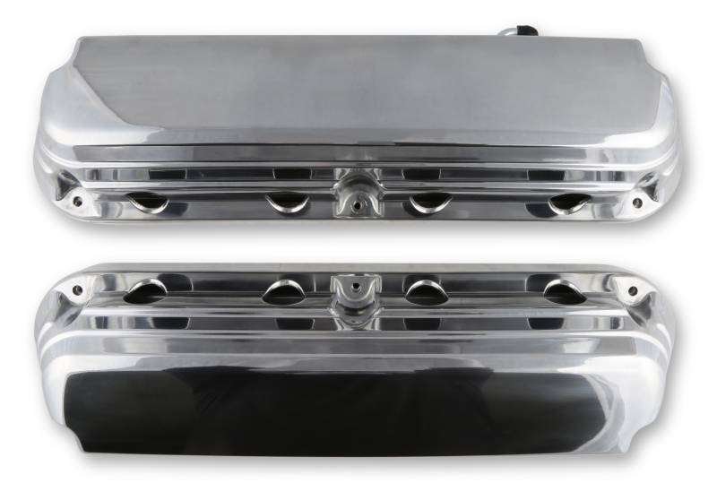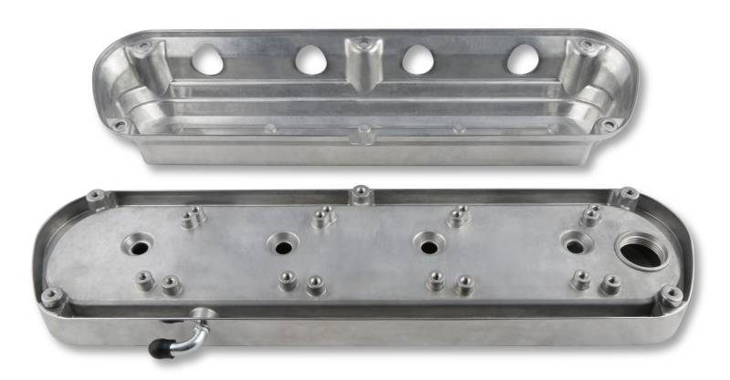 Holley's 2-Piece LS valve covers are a great way to update the look of your LS engine without the use of complicated adapter systems or the hassle of remote coil relocation. These modular LS valve covers feature an OE height, internally baffled LS valve cover base with integrated coil mounts for popular Gen I and Gen V style LS coil bodies, and a Ford style overcover that hides the unsightly LS coils and messy wiring harness - allowing the full performance benefits of coil-on-cover ignition setups without the robotic styling. The coil cover also features cast-in provisions for the spark plug boots and coil wiring harness so no extensions or custom wiring is required.\nEach 2-Piece LS valve cover set includes a low-profile billet oil fill cap, hardware and spacers for mounting both versions of LS coil bodies, and dress up hardware and rubber grommets for the coil covers. These modular LS valve covers are available in 3 custom finishes: natural cast, polished, and satin black