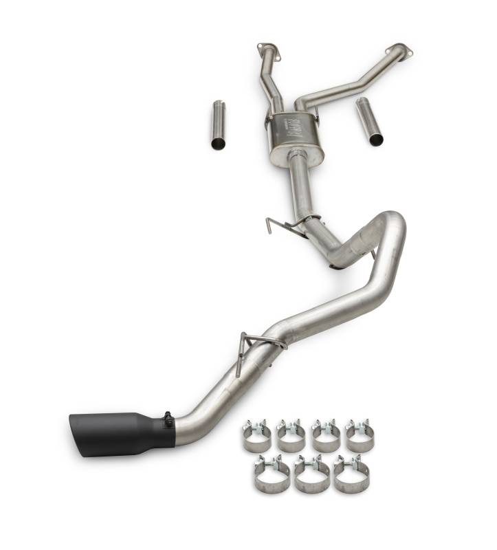 This Flowmaster® Flow FX® cat-back exhaust system for the 2022-2026 Toyota Tundra trucks with the 3.4-liter engine is manufactured using durable 409 stainless steel throughout and features dual 2.50-inch dual inlet and 3.00-inch single exit mandrel bent pipes for better exhaust gas flow. A Flow FX "straight-through" muffler is used for a moderate sound level and maximum performance over the stock muffler. Dyno increases of 11 hp and 12 lbs-ft over stock measured at the rear wheels. This system exits out the side, behind the rear wheel with a 4.50-inch black ceramic tip for added style and a custom look. The system uses all the existing factory hanger locations and includes installation instructions and all necessary hardware for an easy installation that you can do at home. Backed by Flowmaster's Lifetime Limited Warranty.
