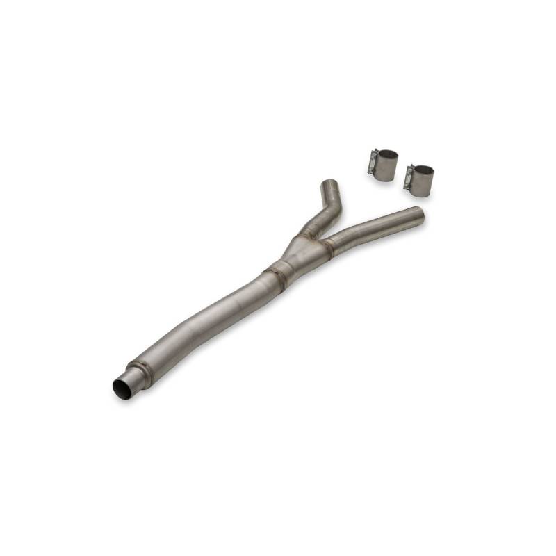 This Flowmaster Y-pipe system fits 2024-2026 Ford Mustangs with the 2.3-liter Ecoboost engine and is a great way to increase the sound level and performance of your modern classic by removing the factory Y-Pipe. These Y-pipe assemblies use Flowmaster's exclusive Scavenger D-port technology, that increases exhaust pulse velocity, and can be used with either the factory rear mufflers or with one of the Flowmaster Axle-back exhaust systems. Constructed with mandrel-bent 3.00-inch stainless steel tubing flowing into a Scavenger Series Y-collector, then splitting into dual 2.50-inch tubing to connect to the axle back muffler assembly. Includes all parts, necessary hardware and easy to follow instructions for installation. Covered by our Flowmaster Lifetime Limited Warranty. Note: Fits coupes and convertibles.