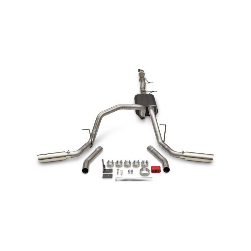 This Flowmaster® American Thunder® cat-back exhaust system is for the 2023-2026 GM Colorado/Canyon with the 2.7-liter turbo engine. This system is manufactured using durable 409 stainless steel tubing and features 3.00-inch to dual 2.50-inch mandrel bent pipes for better exhaust gas flow. A 50 Series Big Block muffler is used for an aggressive to moderate sound level and maximum performance. Maximum increases on the dyno revealed 13 hp and 15 lb-ft at the rear wheels. This system exits out the rear or side of the truck with dual 3.5-inch polished stainless steel tips for added style. The system uses all the existing factory hanger locations and includes installation instructions and all necessary hardware for an easy installation that you can do at home. Backed by Flowmaster's Lifetime Limited Warranty.